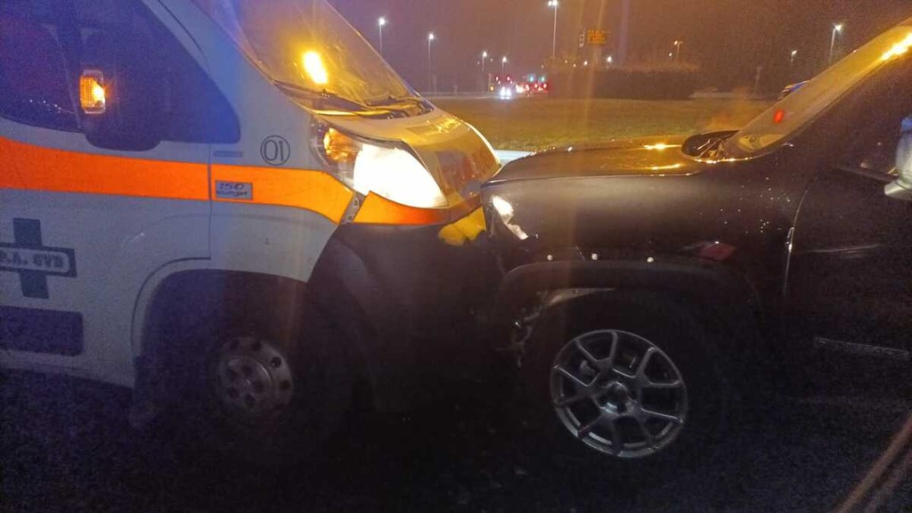 Nella notte un'auto ha colpito frontalmente l'ambulanza della Croce Verde Biellese, percorrendo in contro mano una rotonda nel vercellese. Al momento non sembra ci siano feriti, ma i danni sono evidenti.