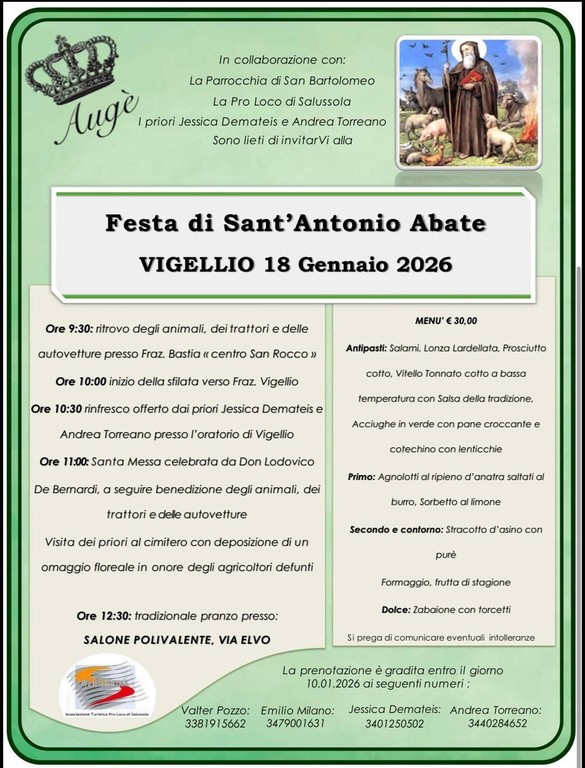 La comunità di Vigellio si prepara a celebrare la Festa di Sant’Antonio Abate con un doppio appuntamento in programma sabato 17 e domenica 18 gennaio 2026, fra tradizione, convivialità e legame con il mondo agricolo.