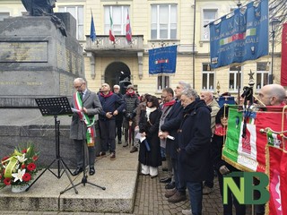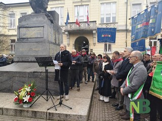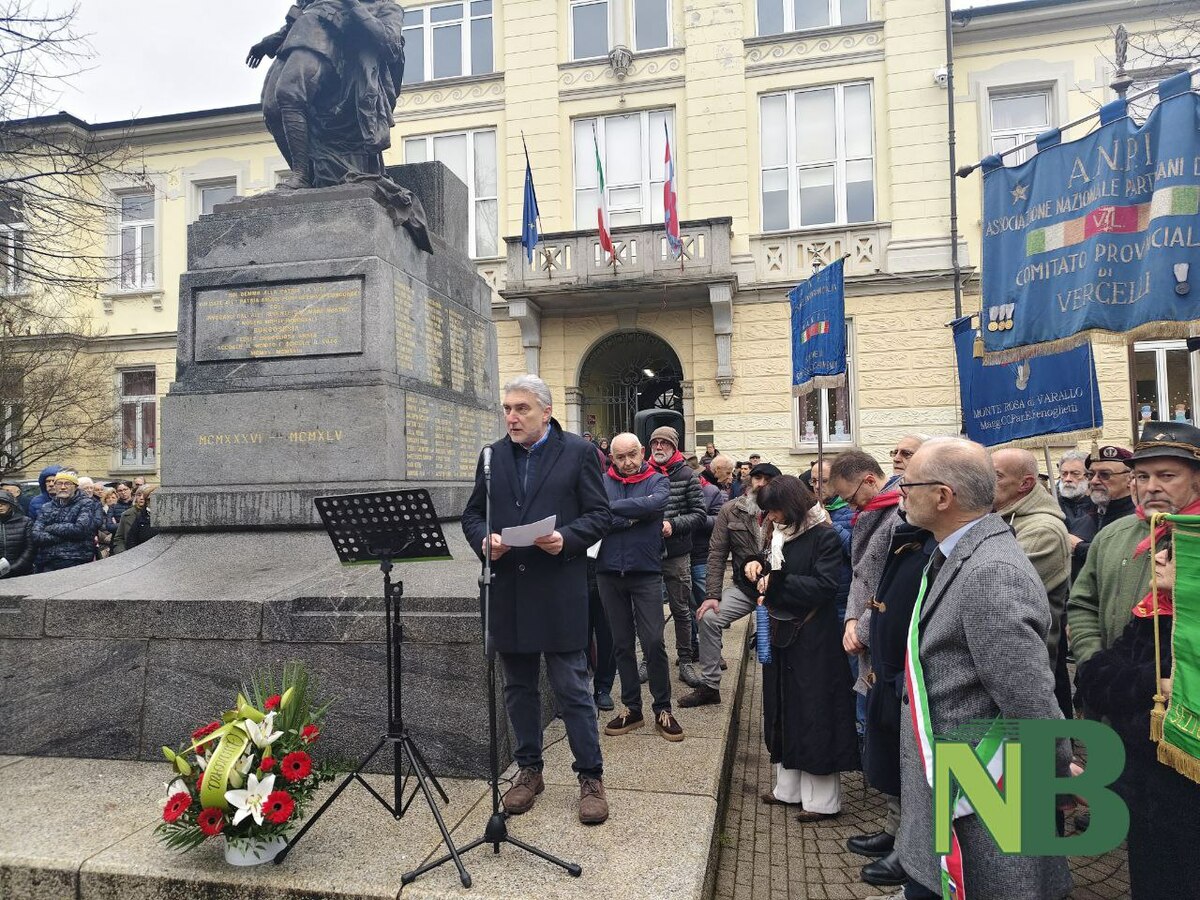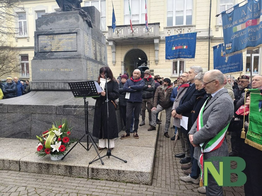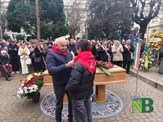 Presente a Borgosesia una folla commossa: consegnato alla nipote Adele il foulard rosso del nonno, ricordato da quest'ultima con toccanti parole e un tenero ringraziamento per i suoi insegnamenti.