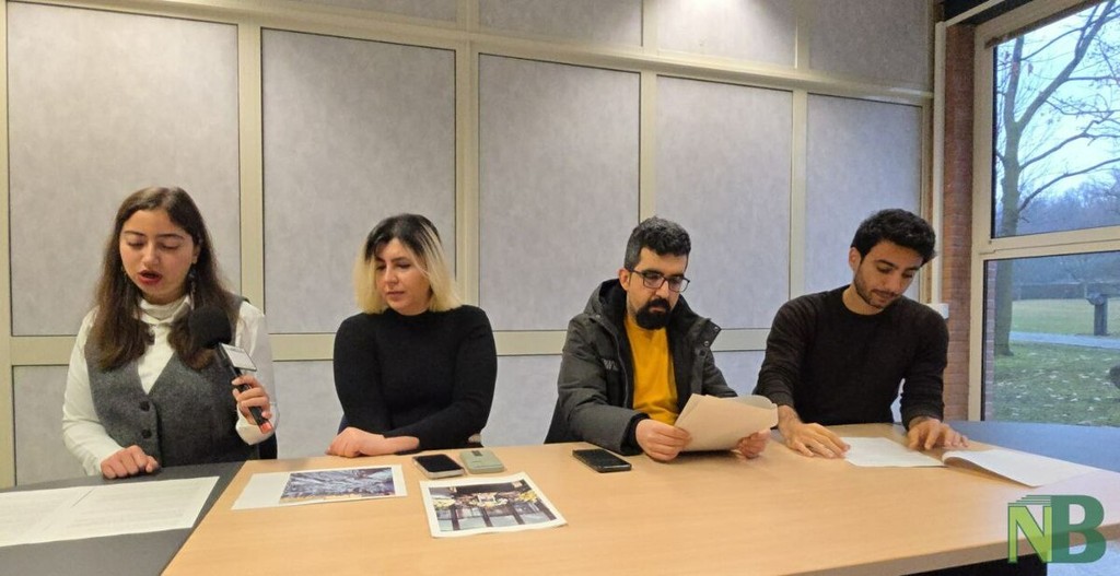 Noi, un gruppo di studenti iraniani, ci siamo riuniti qui oggi mentre i nostri cuori battono per una patria che, a migliaia di chilometri di distanza, è intrappolata nel sangue e nel fuoco.