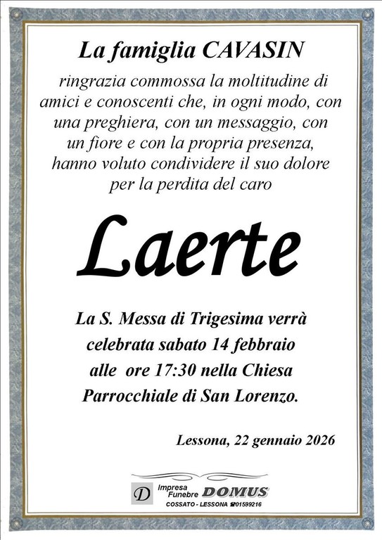 Laerte Cavasin, ringraziamento