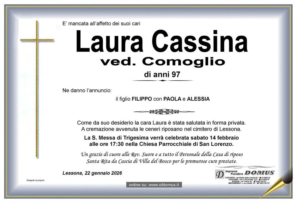 Laura Cassina, ved. Comoglio