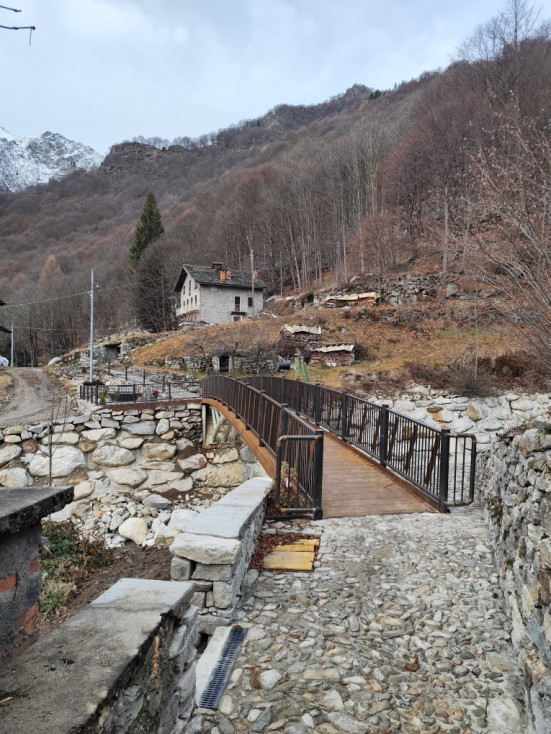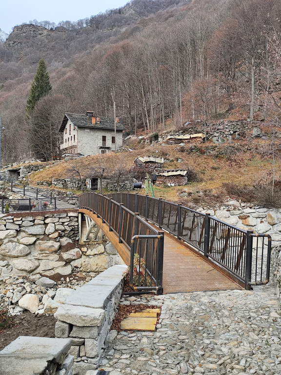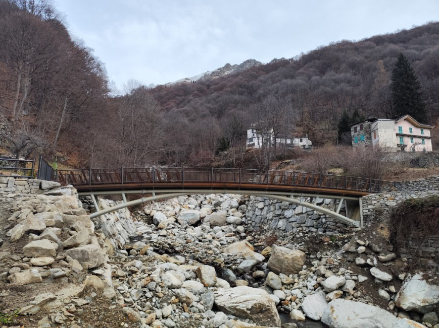 Quello portato via dalle acque nel 2020, era stato ricostruito a seguito della piena del 13 ottobre 1910; evento che vide il crollo anche del ponte in pietra del “Chioso”, sulla centrale via Roma. Il territorio di Piedicavallo, infatti, è disseminato di corsi d’acqua: dai semplici impluvi fino ai 5 torrenti la cui portata, variabile nel corso dell’anno, non viene mai meno. L’evento alluvionale dei primi giorni dell’ottobre del 2020 li ha interessati tutti ma, in particolar modo, le aste torrentizie del Cervo e del Mologna.