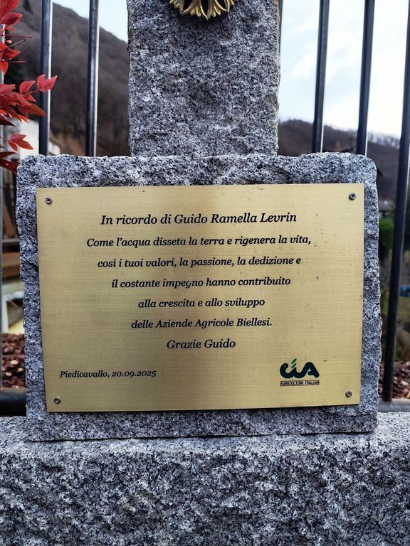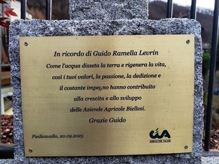 Infine, nell’area rinnovata, a due passi dall’ingresso del nuovo ponte, ha trovato posto una fontana in pietra che i familiari, assieme alla Confederazione Italiana Agricoltori – CIA di Biella, ha voluto donare alla comunità di Piedicavallo in memoria di Guido Ramella Levrin.