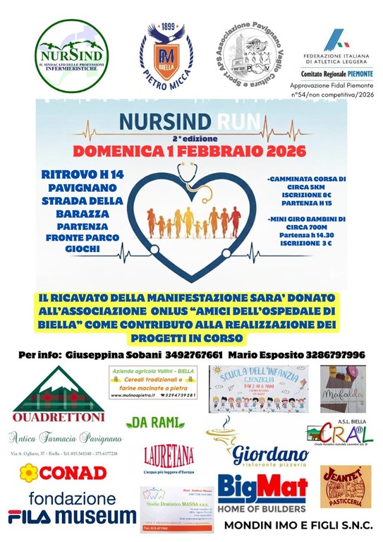 Dopo il successo della prima edizione nel 2025, domenica 1 febbraio 2026 Pavignano si prepara ad accogliere la seconda edizione della NURSIND RUN, la corsa non competitiva promossa dal sindacato delle professioni infermieristiche NURSIND, in collaborazione con le realtà del territorio.