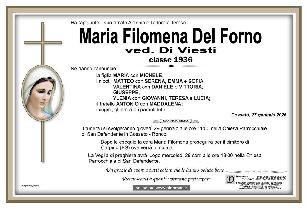 Maria Filomena Del Forno, ved. Di Viesti