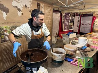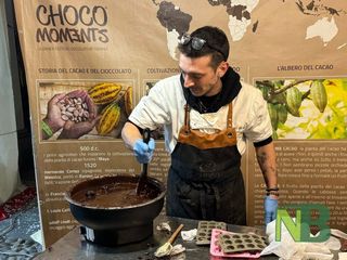 Ha richiamato molte persone la seconda edizione di ChocoMoments, l'evento dedicato interamente al cioccolato. Diversi gli stand presenti in piazza Duomo, a Biella, che hanno trovato l'apprezamento dei visitatori. Tra i momenti più attesi sicuramente la realizzazione di una tavoletta di cioccolato da record lunga ben 10 metri, andata in scena nella prima serata di oggi, 31 gennaio, alla presenza di famiglie e bambini. Per l'occasione sono stati scritti anche i nomi dei presenti con gocce di cioccolato bianco. Al termine, la tavolozza è stata spezzata e distribuita liberamente.