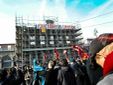Un gruppo di manifestanti si è arrampicato sulle impalcature della vecchia stazione in cantiere e ha srotolato lo striscione con scritto Askatasuna vuol dire libertà.