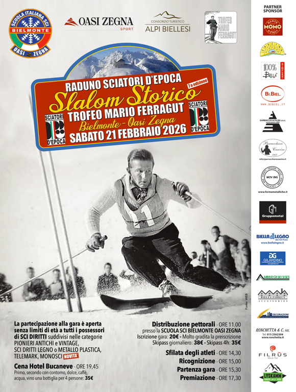 Il patrimonio storico rivive nello Slalom Storico – Trofeo Mario Ferragut, in programma sabato 21 febbraio 2026 a Bielmonte, giunto alla sua settima edizione. La partenza della gara è prevista alle 15.30.