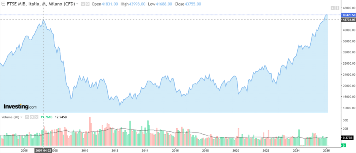 Il FTSE MIB ha recentemente superato i massimi dello scorso aprile 2007, segnando un traguardo atteso da quasi 19 anni.