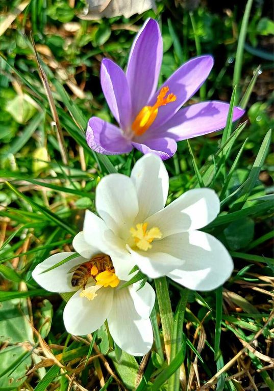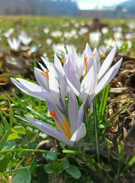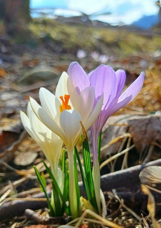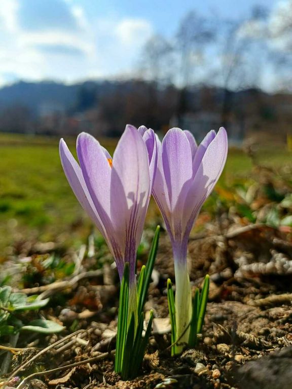 Poche ore fa oggi domenica 8 febbraio, al Bivio di Tollegno, i primi “messaggeri” della primavera hanno fatto capolino: piccoli ma luminosi, i "Crocus" di colore bianco e lilla, spuntano al sole tra i prati. Come ricordava De André nella sua celebre canzone del 1967, “Dal letame nascono i fior”, la natura sa sempre sorprendere, anche nei luoghi più semplici.