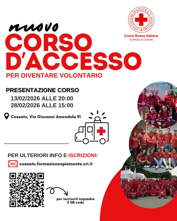 Il Comitato di Cossato della Croce Rossa Italiana organizza un nuovo corso d’accesso per diventare volontari, rivolto a chi desidera avvicinarsi al mondo del volontariato e alle attività dell’associazione.