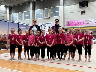 Fra le senior della stessa categoria Bonifacio Giorgia è prima al cerchio e seconda alle clavette, mentre Giabardo Ilaria è prima alle clavette e seconda al nastro. Ultima categoria a chiudere la competizione le Gold 1 junior dove Viana Ginevra ottiene due primi posti a clavette e nastro, Gallo Rebecca è prima alla palla e seconda al cerchio e Marchesi Iris è prima al cerchio e quarta alla palla. Hanno seguito le atlete in gara lo staff diretto dalla DT Tatiana Shpilevaya e composto dalle istruttrici Arianna Prete, Mariia Nikitchuk, Elena Chursina, Polina Nikitchuk e dalle assistenti Giulia Bocci e Maria Giulia Sales Neto tutte particolarmente soddisfatte dei risultati ottenuti dalle loro assistite e del clima di serenità ed amicizia che hanno contraddistinto le due giornate dell’evento.