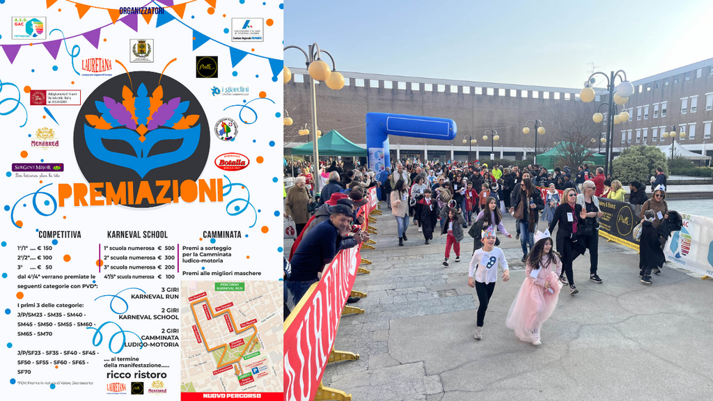 Accanto alla competizione, la Karneval Run conserva il suo cuore più autentico: quello ludico e inclusivo. La camminata ludico-motoria è aperta a tutti e prevede premi a sorteggio per i partecipanti, oltre a riconoscimenti speciali per le migliori maschere. Un invito a vivere lo sport con leggerezza, creatività e allegria, trasformando la corsa in un momento di condivisione.
