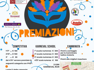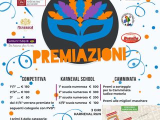 Grande attenzione anche al mondo scolastico con la Karneval School, che rende i ragazzi veri protagonisti della giornata. Le scuole più numerose saranno premiate con un montepremi totale di 1.100 euro: 1ª scuola 500 €, 2ª scuola 300 €, 3ª scuola 200 €, 4ª e 5ª scuola 100 € ciascuna