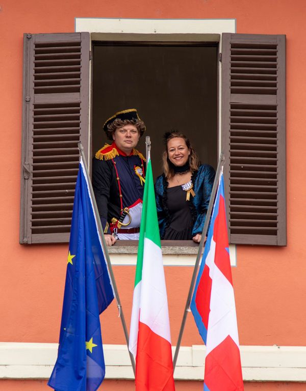 Particolarmente suggestivo il momento in cui il sindaco e il vice, in costume d’epoca, la Marchesa del XVIII secolo e il Generale Alessandro De Rege di Gifflenga, si sono affacciati alla finestra del Municipio. Un gesto simbolico che ha voluto ricordare un frammento di storia del Carnevale locale: proprio da quella stessa finestra, un tempo, si estraevano i numeri della lotteria di Carnevale, tra l’attesa e l’emozione dei presenti in piazza. Un richiamo al passato che si inserisce perfettamente nello spirito dei 1100 anni: custodire la memoria per continuare a costruire il futuro.