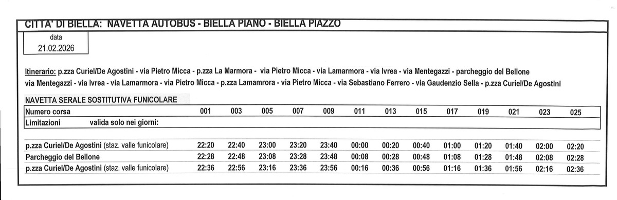 L’evento, promosso dal comune di Biella ed organizzato da La Fonderia Musicale, realtà attiva nella promozione di appuntamenti culturali e musicali sul territorio. Durante la serata sarà disponibile anche un servizio bar, per accompagnare il pubblico con momenti di ristoro e convivialità. Per agevolare la partecipazione, sarà attivo inoltre un servizio navetta per il Piazzo: gli orari completi sono disponibili qui sotto.