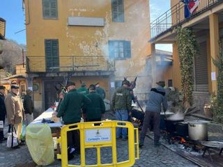 La fagiolata, piatto tipico del periodo di carnevale e simbolo di convivialità, ha un importante ruolo sociale: instaura un momento di condivisione, in cui i più esperti mettono a disposizione la loro esperienza all’insegna di un evento di consolidata tradizione. La preparazione si compone di più fasi: fin dal giorno prima gli addetti hanno allestito i fuochi di legna, preparando i paioli e gli ingredienti necessari. Un gruppo di 15 Alpini ha poi avviato la lenta cottura della fagiolata alle 6.15 del mattino di domenica 15 febbraio. È stata in seguito servita al pubblico a partire dalle 12.