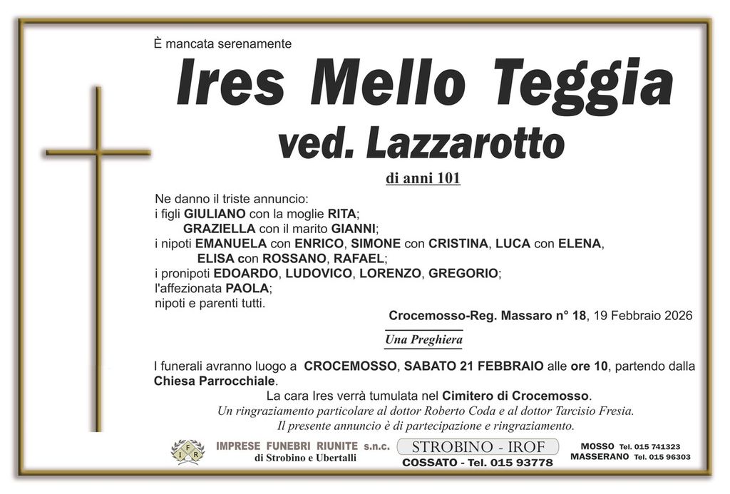 Ires Mello Teggia, ved. Lazzarotto