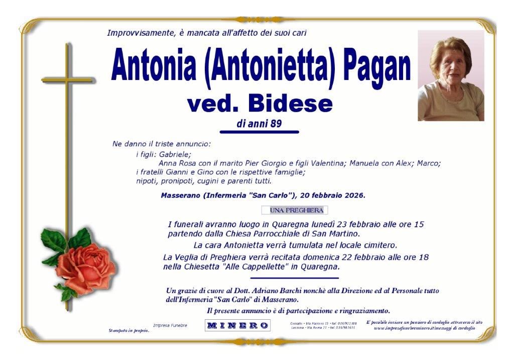 Antonia Pagan, ved. Bidese