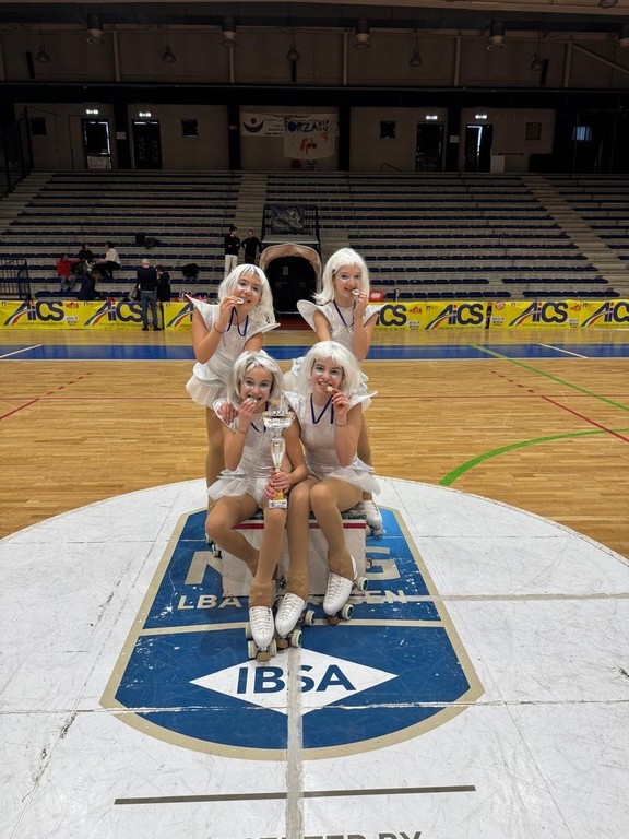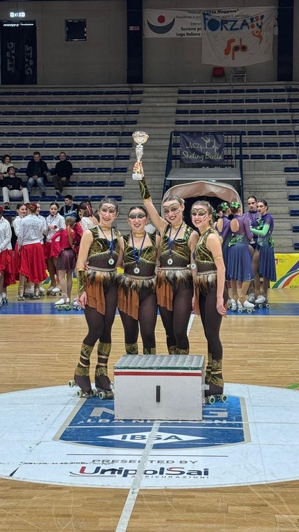 La città di Biella si è tinta d’oro domenica 8 febbraio al Palapajetta, grazie all’eccellente esordio dei quartetti KAYA ( formato dalle biellesi Recupero Lucrezia, Recupero Maria Elena, Paraggio Annarita e dalla novarese Mandrino Asia) ed ETHOS ( formato dalle atlete Recupero Adele, Negro Agnese,Milesi Maia e Fuda Olimpia) della società sportiva rotellistica biellese ASD Skating Biella; protagonisti assoluti della prima gara di quartetti e gruppi spettacolo della stagione sportiva 2026 di pattinaggio artistico.