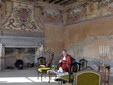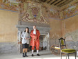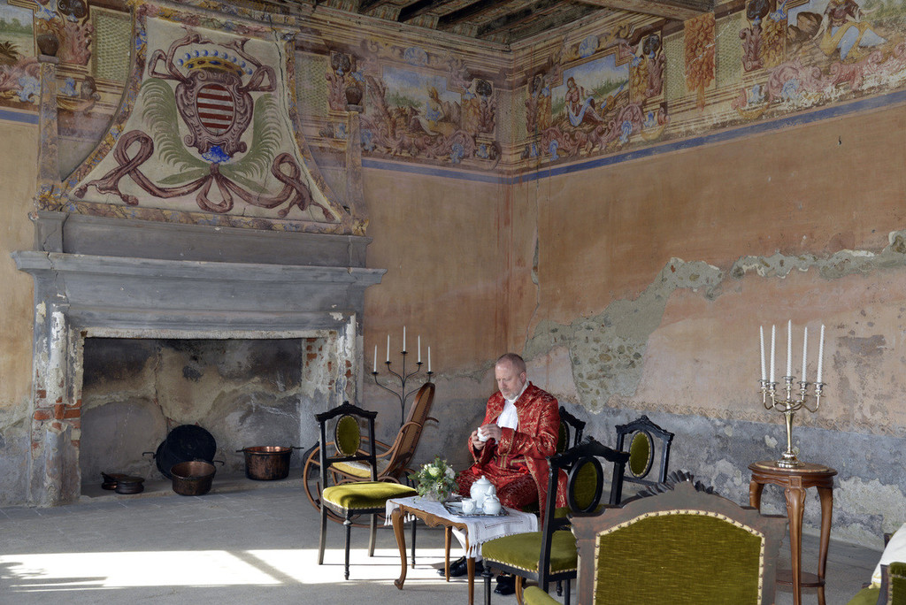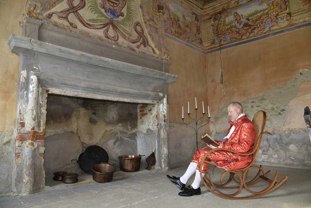 Giunti a casa Maffeo, in corso di recupero e appartenuta un tempo alla famiglia Avogadro come scoperto dalla stessa Ghiraldello durante le sue ricerche, è stato possibile ammirare il salone d’onore decorato sulla porzione superiore delle pareti da una fascia mostrante scene allegoriche e sulla cappa del camino da un magnifico stemma della casata. Proprio in questo salone, in cui per l’occasione è stato ricreato un arredamento d’epoca, è stato emozionante incontrare, impersonato dall’attore Simone Cantono, l’antico proprietario, nientemeno che Giovanni Pietro Avogadro di Cerrione il quale, nato l’11 giugno 1776, ebbe vita tormentata secondo quanto rintracciato dalla stessa Ghiraldello nelle carte d’archivio. Cantono, apparendo improvvisamente sulla porta della dimora, ha tenuto un monologo che, ideato dalla studiosa, ha visibilmente emozionato il pubblico.