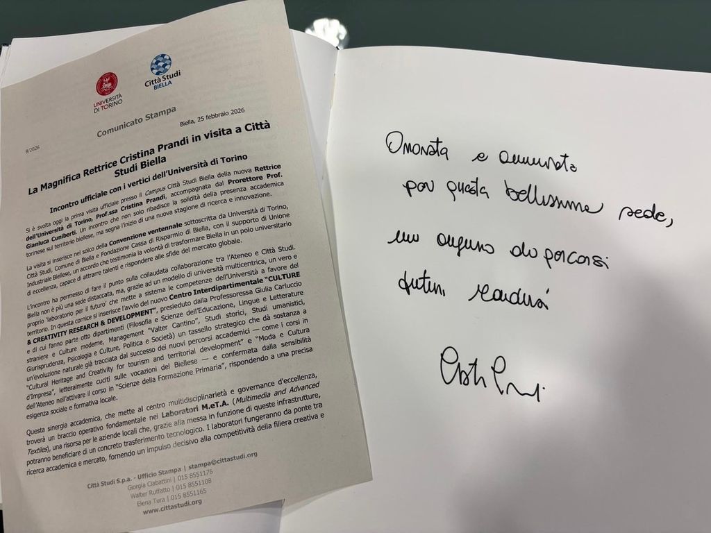 La visita si inserisce nel solco della Convenzione ventennale sottoscritta da Università di Torino, Città Studi, Comune di Biella e Fondazione Cassa di Risparmio di Biella, con il supporto di Unione Industriale Biellese, un accordo che testimonia la volontà di trasformare Biella in un polo universitario di eccellenza, capace di attrarre talenti e rispondere alle sfide del mercato globale.