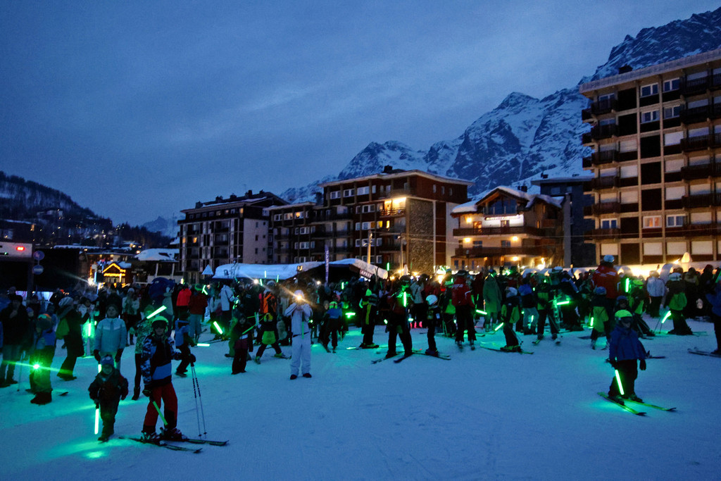 Un invito accolto da tantissime persone di tutte le età, da bambine e bambini della scuola di sci a famiglie che sono salite apposta proprio in questo fine settimana pur di esserci anche alla fiaccolata fino ai turisti stranieri, prima incuriositi dallo spettacolo e poi felici di poter anche contribuire a una buona causa. E, a proposito di bambini, il parterre del Campetto Cretaz ha mostrato un altro possibile utilizzo delle fiaccole verdi: finte spade laser per giocare sulla neve, un momento di festa in più in una giornata piena di sorrisi.