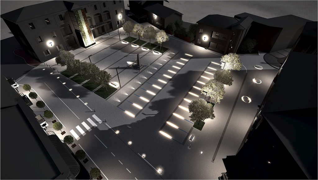 Tra tali obiettivi, quello di pervenire ad uno spazio flessibile adatto ad ospitare i necessari parcheggi per l’uso quotidiano a servizio delle attività presenti ma anche ad essere all’occorrenza facilmente e interamente pedonalizzabile, connotato da una conformazione moderna, fondata su geometrie unitarie essenziali, in grado di assegnare allo spazio ordine, eleganza, e piacevolezza percettiva sia diurna che serale/notturna.