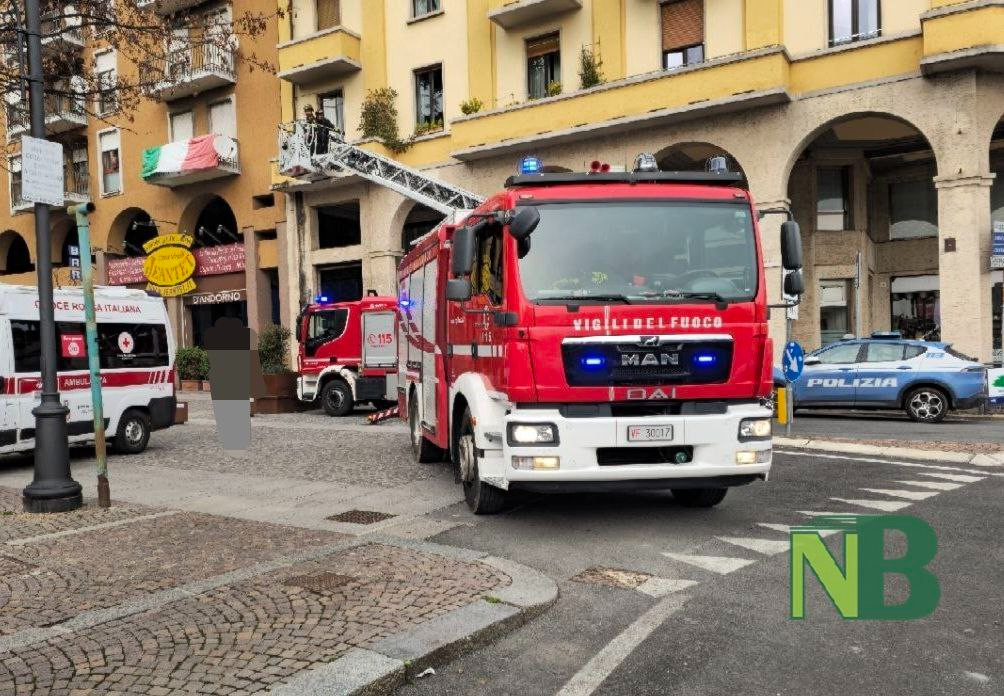 Sirene nel centro di Biella. Vigili del Fuoco, 118, personale di Questura e agenti di Polizia Locale sono intervenuti in piazza Vittorio Veneto per prestare i primi soccorsi ad un uomo, trovatosi in difficoltà dentro il suo alloggio.