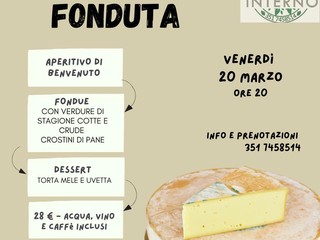 Una serata dedicata ai sapori intensi della montagna, con una fonduta cremosa e avvolgente, ideale per condividere un momento speciale.
