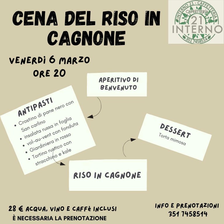 -venerdì 6 marzo – Cena del risotto in cagnone.
