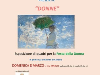- 8 marzo e 15 marzo – “ DONNE” esposizione di quadri a tema per la Festa della Donna Orari di apertura : 10-12 e 15-18 , alle Signore presenti un gentile omaggio 14 marzo – CORSO di FENG SHUI (dalle 14,30 alle 17) a cura di Elena Antoniotti * e Michela Silvestri ** (*da oltre 20 anni studio il mondo olistico, occupandosi soprattutto di riflessologia, floriterapia e iridologia) (** da anni insegnante di tecniche energetiche, come il Reiki, e operatrice olistica)