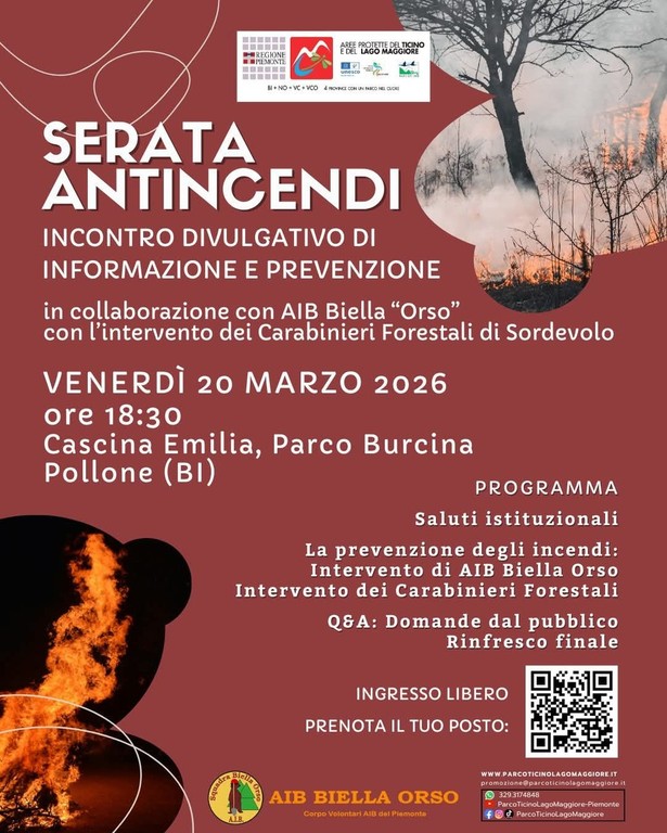 Il programma prevede saluti istituzionali, l’intervento di AIB Biella Orso dedicato alla prevenzione degli incendi, l’intervento dei Carabinieri Forestali, uno spazio per le domande del pubblico e, a conclusione dell’incontro, un rinfresco finale.
