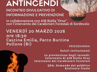 Il programma prevede saluti istituzionali, l’intervento di AIB Biella Orso dedicato alla prevenzione degli incendi, l’intervento dei Carabinieri Forestali, uno spazio per le domande del pubblico e, a conclusione dell’incontro, un rinfresco finale.