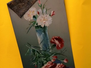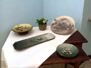 La mostra presentava disegni preparatori, dipinti su tela, opere realizzate su particolari supporti metallici a cartouche prodotti da una manifattura tedesca attiva tra la fine dell’Ottocento e il 1930, oltre a lavori su seta, conchiglie e decorazioni per oggetti d’arredo, prevalentemente con soggetti floreali o paesaggistici.