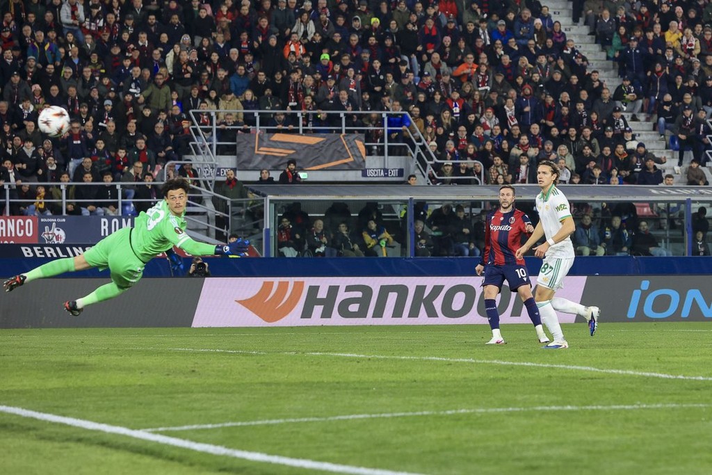 BOLOGNA (ITALPRESS) - Finisce 1-1 l'andata del derby italiano tra Bologna e Roma, valido per gli ottavi di finale di Europa League. Sono Bernardeschi e Pellegrini a mettere la firma su un risultato che lascia aperto ogni possibile scenario in ottica passaggio del turno. L'inizio è vivace e piuttosto nervoso da entrambe le parti. Al 20', la prima grande chance capita sul destro di Zaragoza che, servito in area da Malen al termine di una rapida ripartenza, sciupa tutto allargando troppo con il destro. Il migliore in campo in questi primi 45 minuti è Bernardeschi, che a ridosso dello scadere ci prova con un mancino a giro che Svilar toglie dall'incrocio dei pali con un intervento prodigioso. In pieno recupero, Miranda batte un corner dalla sinistra sulla testa di Ferguson, il quale fa da sponda per Pobega che però non indirizza bene il colpo di testa da buona posizione. Le due squadre vanno al riposo sullo 0-0. A sbloccare il match, dopo cinque minuti dall'inizio della ripresa, sono gli emiliani. Rowe salta un uomo e si avvicina al limite dell'area, allarga la palla sulla destra e Bernardeschi apre il mancino con i giri giusti, facendo infilare la palla nell'angolino lontano di prima intenzione. Finisce 1-1 l'andata del derby italiano tra Bologna e Roma, valido per gli ottavi di finale di Europa League. Sono Bernardeschi e Pellegrini a mettere la firma su un risultato che lascia aperto ogni possibile scenario in ottica passaggio del turno. L'inizio è vivace e piuttosto nervoso da entrambe le parti. Al 20', la prima grande chance capita sul destro di Zaragoza che, servito in area da Malen al termine di una rapida ripartenza, sciupa tutto allargando troppo con il destro. Il migliore in campo in questi primi 45 minuti è Bernardeschi, che a ridosso dello scadere ci prova con un mancino a giro che Svilar toglie dall'incrocio dei pali con un intervento prodigioso. In pieno recupero, Miranda batte un corner dalla sinistra sulla testa di Ferguson, il quale fa da sponda per Pobega che però non indirizza bene il colpo di testa da buona posizione. Le due squadre vanno al riposo sullo 0-0. A sbloccare il match, dopo cinque minuti dall'inizio della ripresa, sono gli emiliani. Rowe salta un uomo e si avvicina al limite dell'area, allarga la palla sulla destra e Bernardeschi apre il mancino con i giri giusti, facendo infilare la palla nell'angolino lontano di prima intenzione. Tre minuti dopo è Malen sfiorare subito il pareggio, quando scheggia il palo con il sinistro dopo essersi liberato di Joao Mario. Al quarto d'ora, Pobega viene lanciato a rete da Bernardeschi, ma Svilar sbarra la strada in uscita al centrocampista ex Milan. Proprio quando i padroni di casa sembravano in controllo, i giallorossi pareggiano. Al 26', Cristante ruba palla a un ingenuo Joao Mario e verticalizza per Malen che, in area, si porta la palla sul destro, una deviazione libera il neo entrato Pellegrini che insacca a porta quasi vuota, con Skorupski che era uscito in precedenza sull'olandese: 1-1. Cinque minuti dopo, Malen semina il panico tra i difensori avversari, ne mette quasi a sedere due e calcia, ma la sfera finisce nuovamente sul palo. Al 43', Lykogiannis pennella una palla invitante dalla sinistra e Vitik anticipa Svilar, ma la sua incornata centra in pieno la traversa. Sarà l'ultima occasione del match. Le due rivali torneranno ad affrontarsi a campi invertiti tra una settimana, per determinare chi tra le due accederà ai quarti di finale.- Foto Ipa Agency -(ITALPRESS).