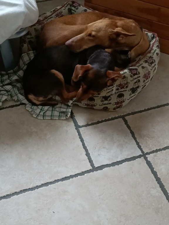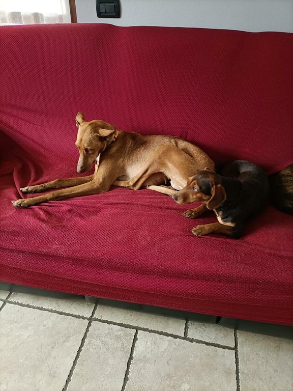 Miriam ha un anno, è una bassottina sterilizzata. Marta ha un anno e mezzo, è una Cirneca dell’Etna sterilizzata.