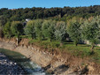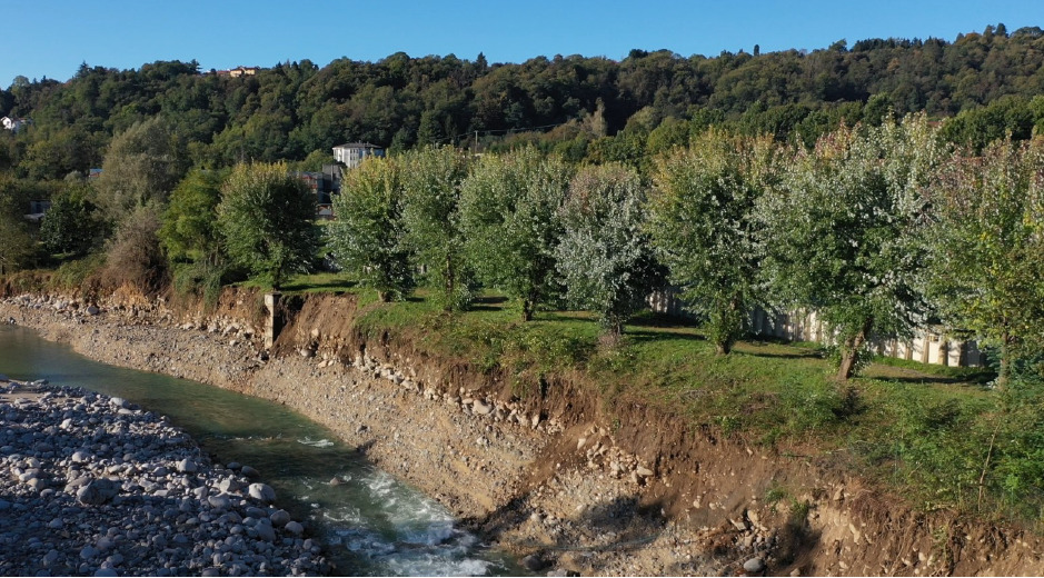 In particolare, nel tratto in località Filatura, l’azione della piena aveva determinato un arretramento significativo della sponda per circa 250 metri, con situazioni di forte instabilità e potenziale pericolo per gli impianti e i fabbricati presenti nelle immediate vicinanze. Il progetto in corso di realizzazione, finanziato con un contributo complessivo di 1,65 milioni di euro nell’ambito del programma “Casa Italia”, prevede la realizzazione di una nuova difesa spondale mediante scogliera in massi di cava, integrata da opere innovative di consolidamento del terreno finalizzati a contrastare i fenomeni erosivi e garantire la stabilità nel tempo delle opere.