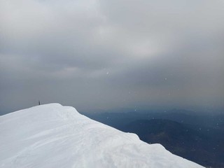 La montagna e il silenzio: questo è quello che si è sentito oggi pomeriggio in cima al Monticchio, prima che iniziasse a nevischiare. Il paesaggio si è scurito, il sole si è nascosto tra le nuvole e i fiocchi di neve hanno iniziato a posarsi delicatamente sul manto bianco.