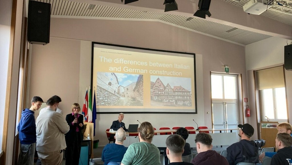 Si è partiti lunedì con l'accoglienza in aula magna e le presentazioni reciproche: il corso CAT e l'indirizzo alberghiero da un lato, la scuola professionale tedesca dall'altro — una realtà che alterna settimane di lezione a settimane di lavoro vero in azienda, tra asfaltatura, murature e restauri. Le presentazioni dei rispettivi indirizzi hanno subito rotto il ghiaccio, accolte con curiosità ed entusiasmo da entrambe le parti. Martedì, giornata libera a Milano per gli ospiti tedeschi.