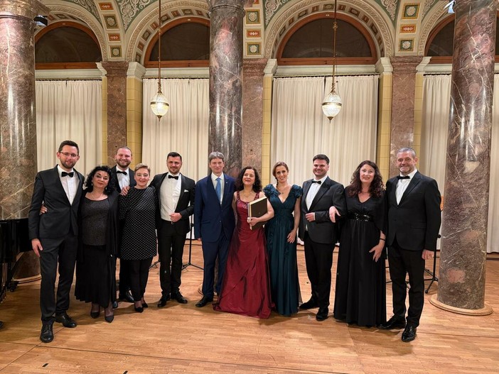 Nella prestigiosa Marmorsaal il capolavoro del Maestro pesarese rivive grazie a un ensemble d'eccezione: applausi scroscianti per il pianista Lorenzo Martini e le voci soliste in un evento di altissimo profilo scientifico e culturale