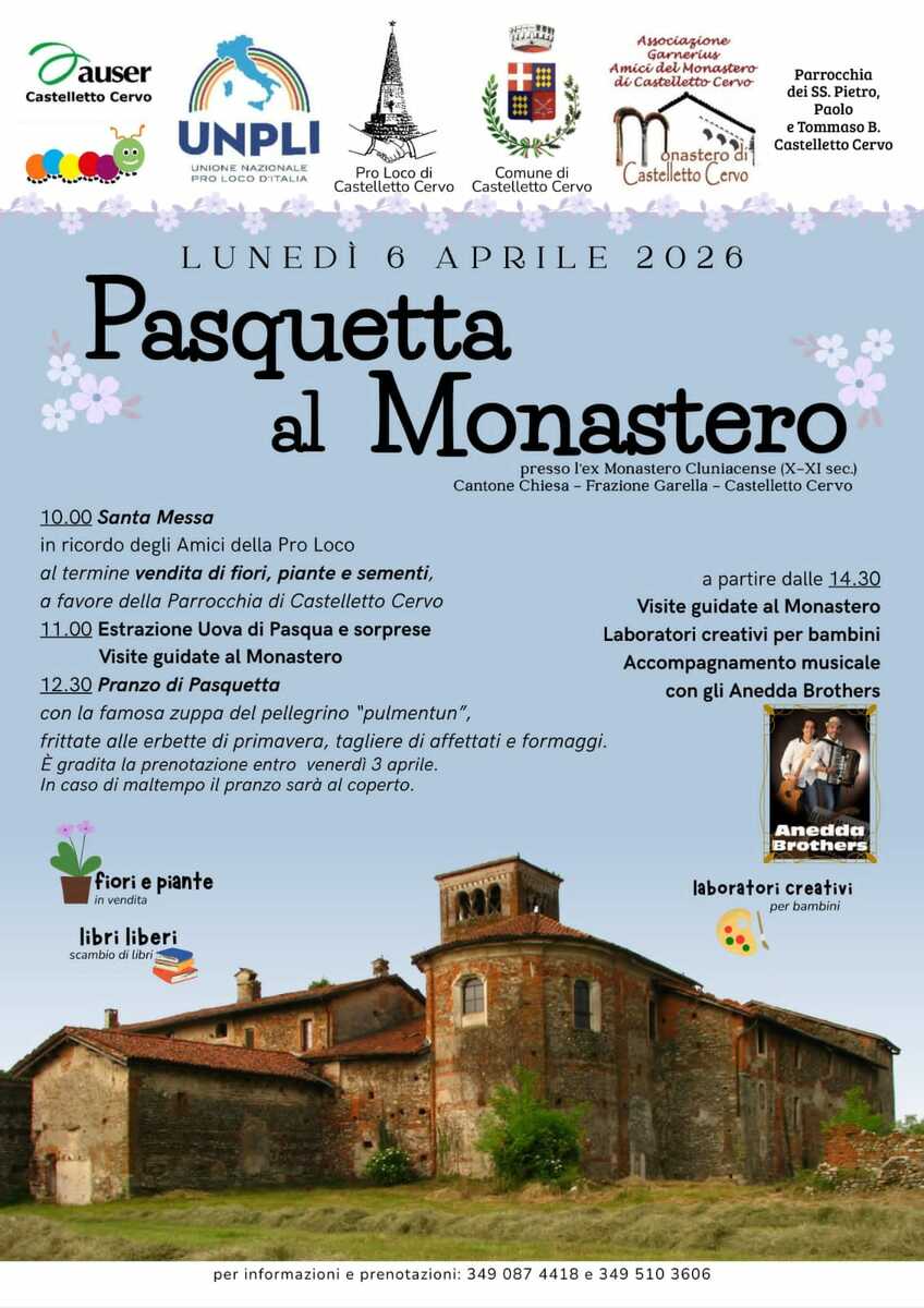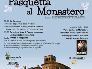 È in programma lunedì 6 aprile 2026 l’iniziativa “Pasquetta al Monastero”, ospitata all’ex Monastero Cluniacense (X-XI sec.) in Cantone Chiesa, frazione Garella, a Castelletto Cervo.