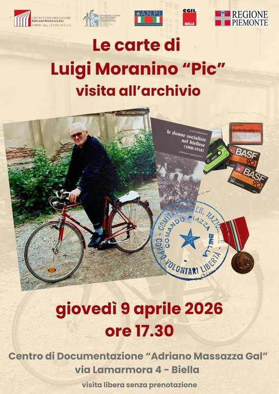 Le carte del “Pic”. E' prevista per giovedì 9 aprile, alle 17.30 presso il Centro di Documentazione della Camera del Lavoro, una visita guidata ad ingresso libero, all'archivio personale di Luigi Moranino, figura storica del territorio tra lotta partigiana e studi sulla Resistenza e sul movimento operaio.
