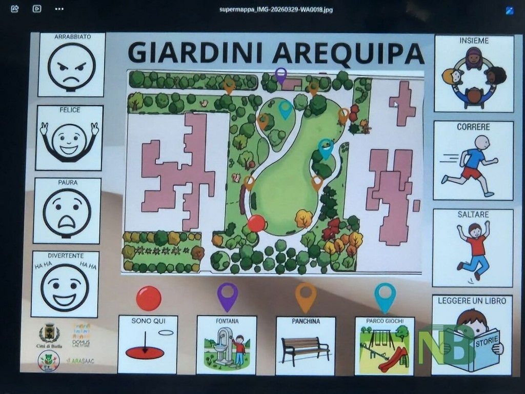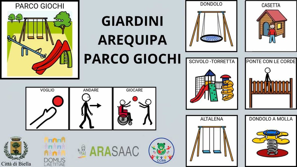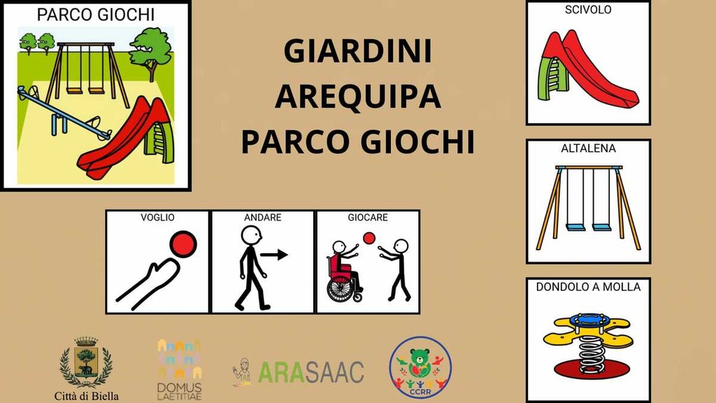 “L’esigenza di aiutare i bambini che hanno difficoltà a comunicare era nata nel mese di gennaio durante un consiglio comunale dei ragazzi e delle ragazze - ha dichiarato l’assessore Livia Caldesi -. Parallelamente la Domus Laetitiae Onlus stava portando avanti un progetto sulla comunicazione aumentativa alternativa che riguarda le strisce pedonali al quale il Comune ha aderito, e che ha a questo punto integrato proprio proponendo di inserire questa cartellonistica nei giardini Arequipa per lo studio della quale ci ha dato un importante supporto. Una scelta che conferma e rafforza l’impegno del Comune di Biella nel costruire una città sempre più accessibile, comprensibile e inclusiva, capace di favorire concretamente l’orientamento, l’autonomia e la partecipazione di bambine, bambini, famiglie e persone con bisogni comunicativi complessi”.