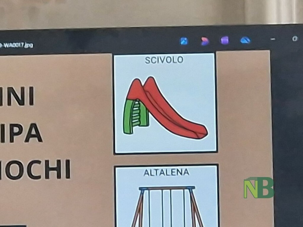 C'è la mappa, o "supermappa" come è stata ribattezzata dagli ideatori del progetto e da chi ha portato il suo contributo, posta all'ingresso dell'area verde, e poi ci sono tante targhe quanti sono i giochi presenti, raffiguranti l'altalena, piuttosto che lo scivolo, e così via, apposte proprio su di essi, come ha spiegato Deborah Attene del Comune di Biella durante la presentazione. Di che cosa si tratta? di un insieme di strategie e strumenti che supporta la comunicazione di bambini/e e persone con difficoltà di linguaggio, attraverso simboli, immagini, tabelle e dispositivi tecnologici. Non sostituisce il linguaggio verbale, ma lo integra e lo supporta, aprendo nuove possibilità di espressione e comprensione. I disegni sono uno strumento potente per i bambini autistici, fanno da ponte comunicativo, regolatore emotivo e mezzo per esprimere il proprio mondo interiore.