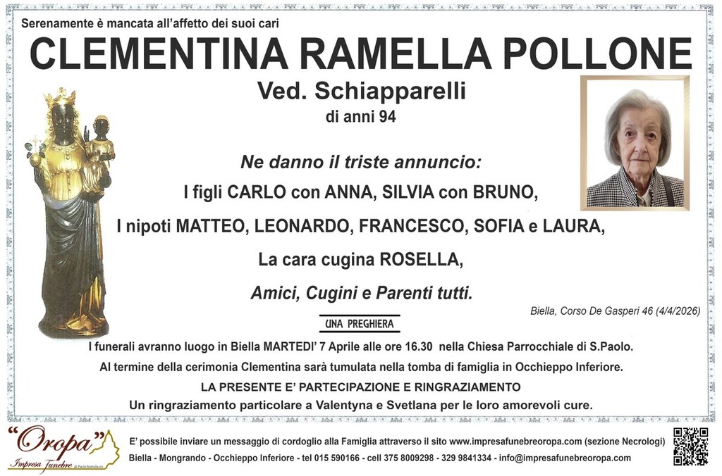 Clementina Ramella Pollone, ved. Schiapparelli