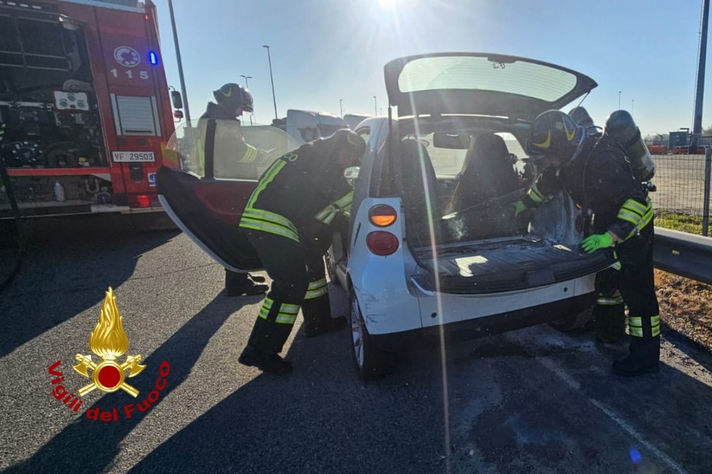 Giunte sul posto, le squadre hanno provveduto ad estinguere le fiamme che avevano interessato il vano motore; è poi seguita la messa in sicurezza del veicolo e dell' area interessata. Non ci sono feriti da segnalare. Presente anche una pattuglia della Polizia Stradale, impegnata nella raccolta dei rilievi.