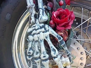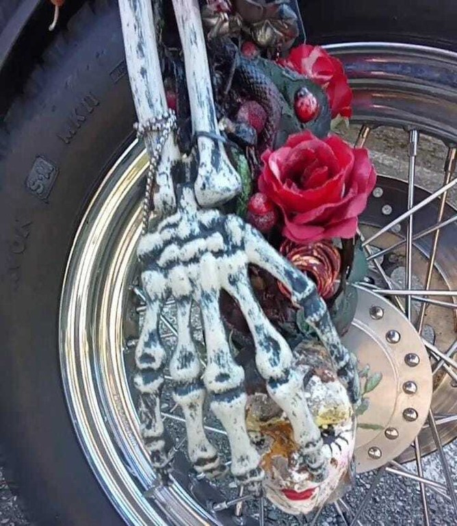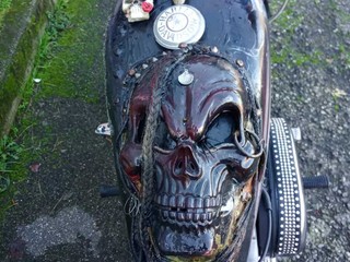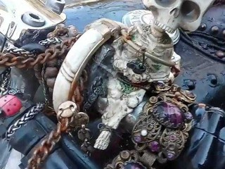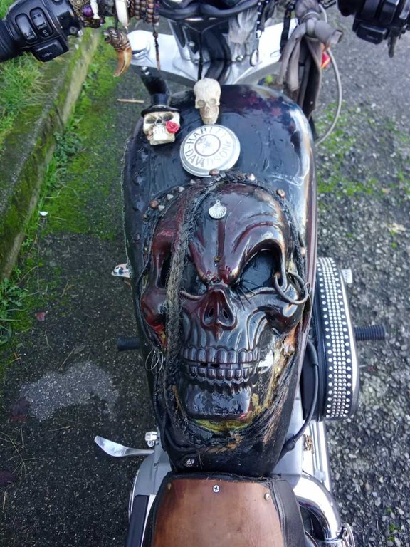 Al centro dell’iniziativa c’è infatti una Harley-Davidson che porta con sé una lunga storia: “Questa moto nasce più o meno trent’anni fa, è stata abbandonata e io l’ho ripresa insieme ai miei collaboratori – spiega Merlino –. L’abbiamo rimessa in strada, in regola, quando era destinata al macero. Poi ho voluto intervenire anche dal punto di vista artistico, trasformandola con uno stile gotico ispirato all’immaginario di Pirati dei Caraibi”.