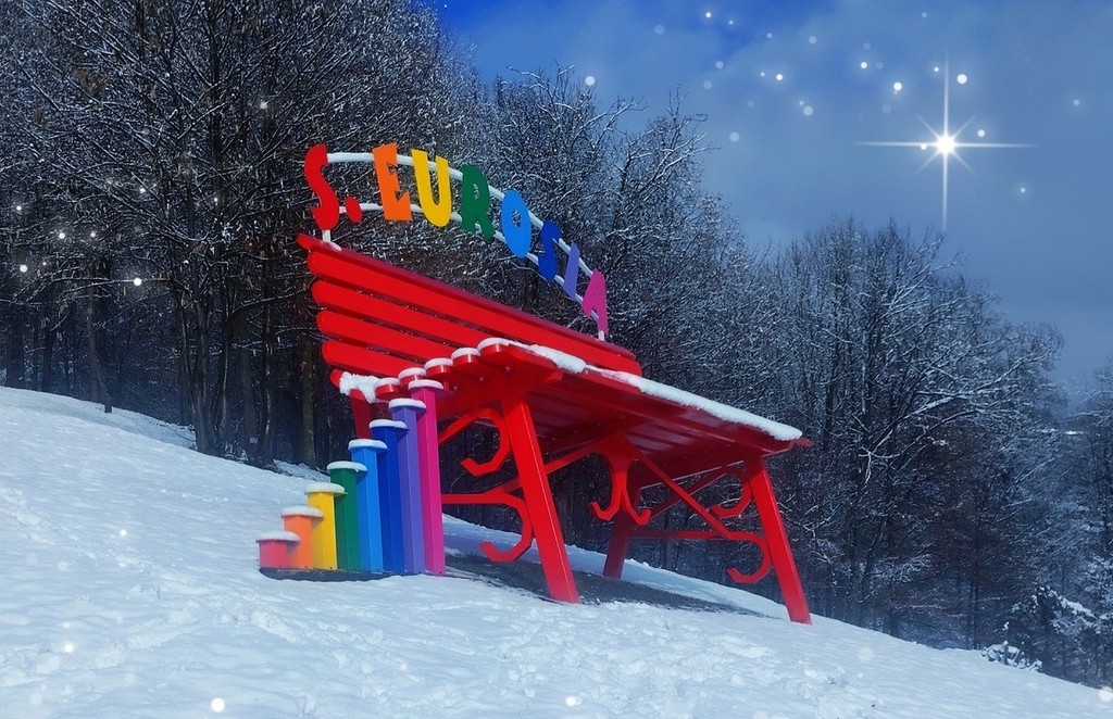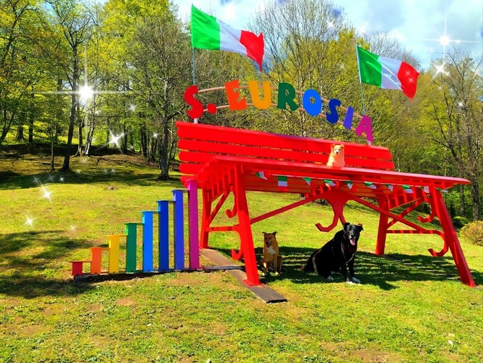 Una grande panchina colorata accoglie da tempo i più piccoli della provincia per far trascorrere momenti di socialità nel verde della Valle Cervo.